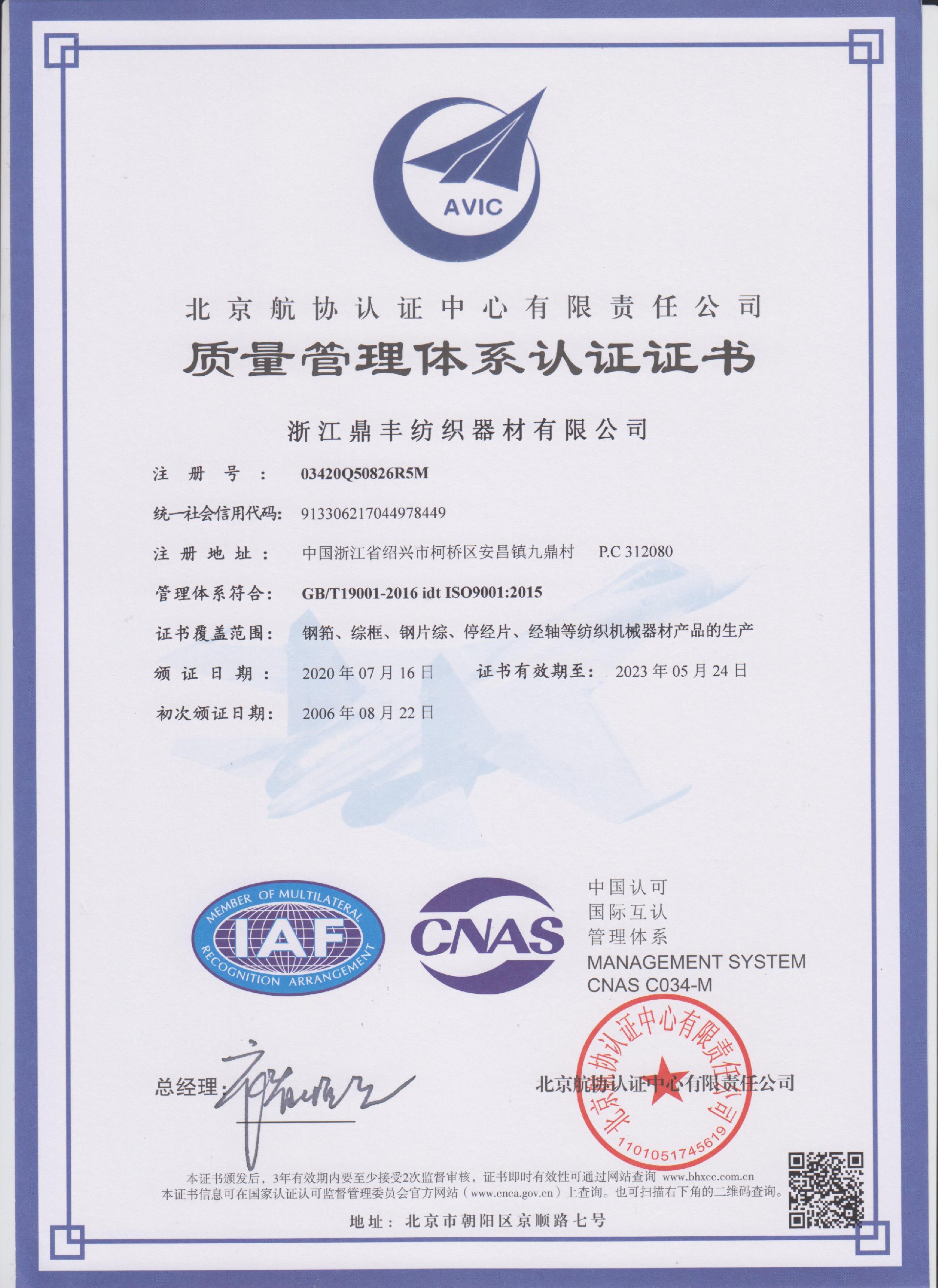 公司現(xiàn)有固定資產(chǎn)6000余萬元,員工300余人,現(xiàn)具有年產(chǎn)噴氣異型筘12萬米,劍桿筘32萬米,噴水筘5萬米,綜框20萬片,鋼片綜2億片,停經(jīng)片1.5億片, 織軸1.2萬套的生產(chǎn)能力。公司“越泉”商標(biāo)被評為“中國馳名商標(biāo)”。公司通過ISO9001 :2015國際質(zhì)量體系認(rèn)證,ISO14001:2015國際環(huán)境管理體系認(rèn)證,ISO45001:2018國際職業(yè)健康安全管理體系認(rèn)證,噴氣織機用鋼筘和織機用鋁合金綜框獲得“浙江制造”品牌認(rèn)證,公司擁有自營進(jìn)出口權(quán),產(chǎn)品暢銷全國并遠(yuǎn)銷印度、巴基斯坦、土耳其、埃及、哥倫比亞、意大利等國家和地區(qū)。